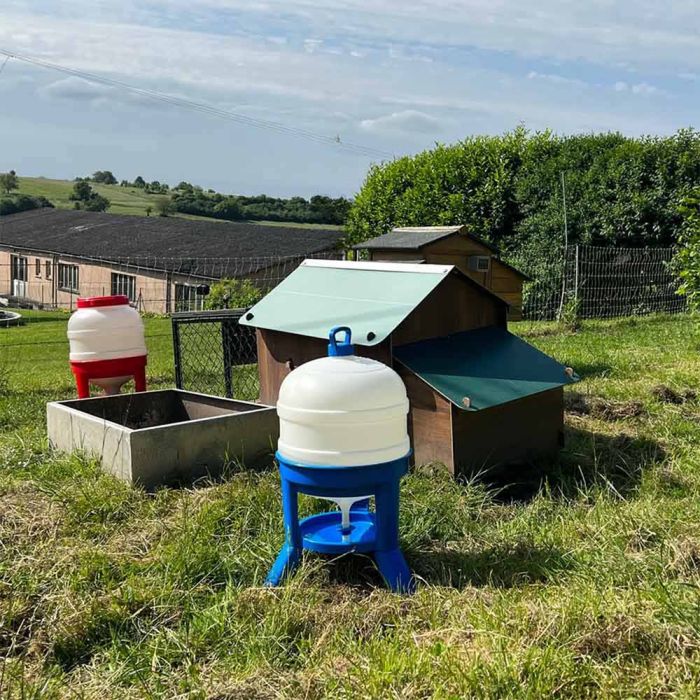 Grâce à son ouverture facile sur le dessus, le remplissage et le déplacement de l'abreuvoir sont facilités. Ses 3 pieds solides et d'une hauteur de 13.5 cm confèrent une stabilité à l'abreuvoir pour volailles et une hygiène du liquide. Le fût de 46 cm de diamètre et de 83.5 cm de haut conserve ainsi l'eau propre et fraîche.