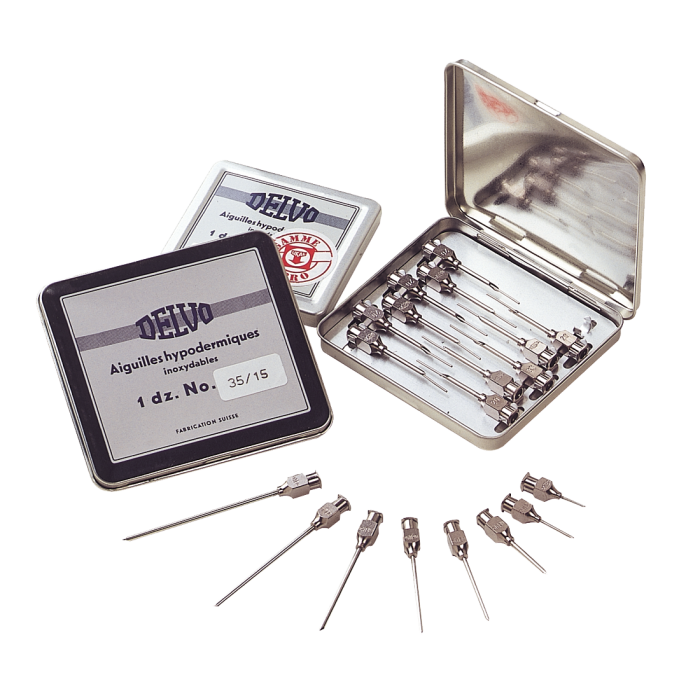 Aiguilles vétérinaires DELVO, qualité supérieure. Affûtage triple biseau, cône LUER LOCK. Livrée par boîte de 12 aiguilles. Longueur: 15 mm. Diamètre interne/10: 15 mm.