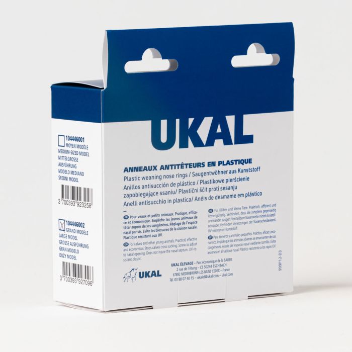 Pour veau et petits animaux, noir. Conditionné par 2. Pratique, efficace, économique. Réglage de l'espace nasal par vis. Evite les blessures de la cloison nasale.