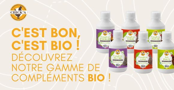 Pour répondre aux besoins des nouveaux hobbyfarmers en quête de naturalité, d’efficacité et de bien-être animal, Chick’A a conçu une ligne bio, formulée à bases de différentes plantes bio et de lithothamne (algue marine qui concentre le calcium, le magnésium, la vitamine D, le fer et de nombreux autres minéraux) naturel :