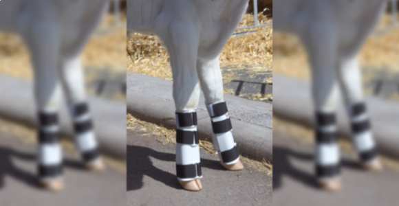 L'attelle de la jambe doit être placée près du sol pour bien étirer le paturon fléchi. nos experts vous conseillent de les garder en place pendant au moins 2 à 4 semaines.