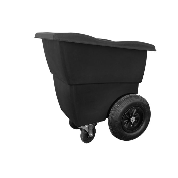 Son bac monobloc, fabriqué en polyéthylène rotomoulé, est totalement étanche et extrêmement résistant aux chocs, à l’usure et aux variations de température. Ce matériau assure une durabilité exceptionnelle même en cas d’utilisation quotidienne intensive. Ce chariot est équipé de deux roues pivotantes à l’avant, dont une avec frein pour plus de sécurité, et de deux roues arrière fixes gonflables de grand diamètre, assurant une stabilité parfaite et un déplacement fluide, même sur sols irréguliers.