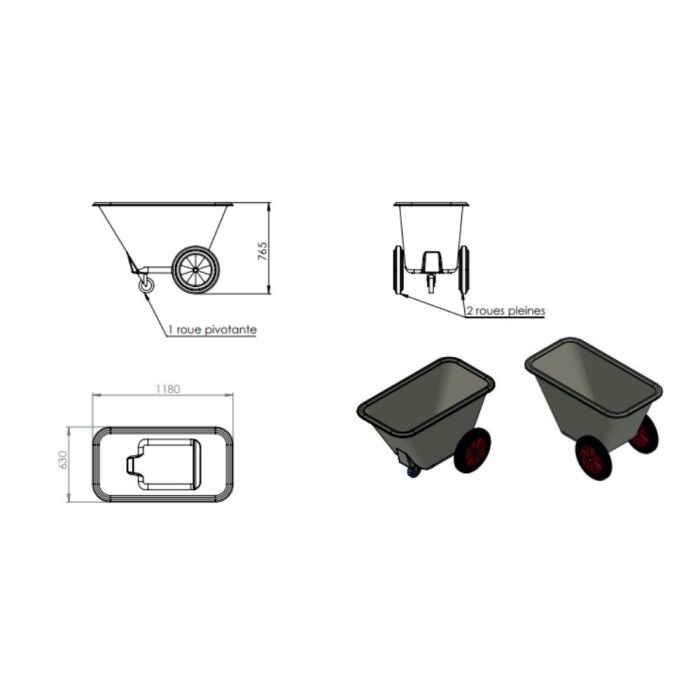 Fabriqué en polyéthylène rotomoulé, un matériau reconnu pour sa robustesse et sa longévité, ce chariot garantit une utilisation intensive au quotidien. Son design ergonomique et ses roues renforcées assurent une excellente maniabilité sur tous types de sols.