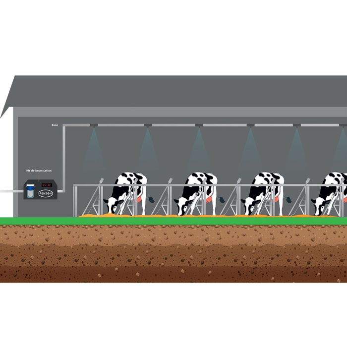 - Permet de gagner entre 5 à 10°C sans mouiller, de repousser les insectes, de lutter contre les odeurs, d'apaiser les animaux et donc de gagner en productivité