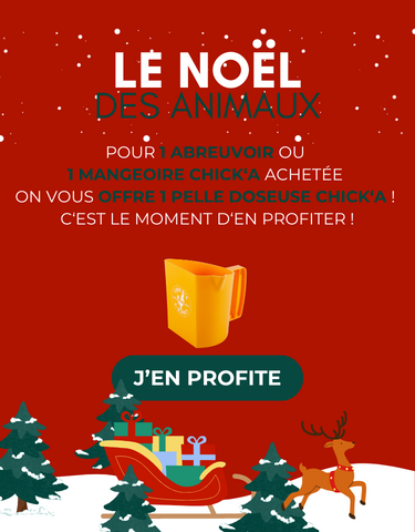 Pour 1 ABREUVOIR OU 1 MANGEOIRE CHICK'A ACHETÉE on vous offre 1 PELLE CHICK'A !