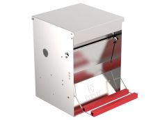 Les mangeoires anti-nuisibles permettent de nourrir vos volailles à la demande tout en protégeant des nuisibles (rongeurs, limaces..) le grain ou les aliments. La poule ou la volaille déclenche l'ouverture de la trappe en grimpant sur la pédale, dès qu'elle redescend la trappe se referme.