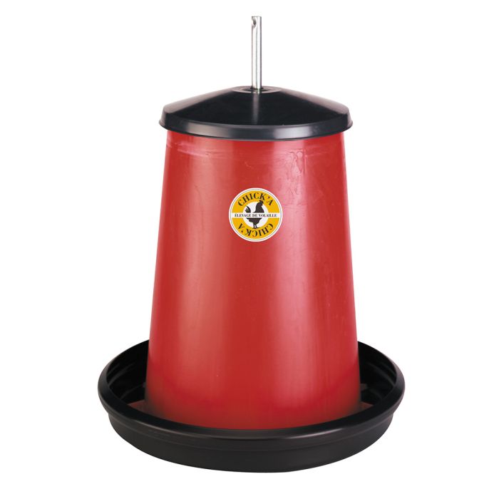 Nourrisseur à trémie de 18 à 20 litres, idéal pour l'alimentation des poussins, poules et autres volailles.
