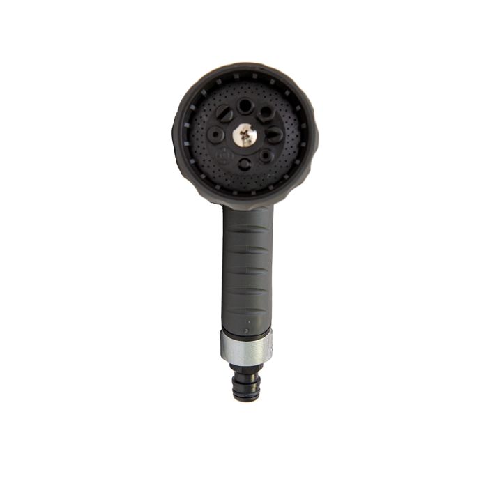 Pour laver ou simplement arroser, c'est à vous de choisir, avec ce pistolet multi-jets à gâchette arrière vous disposerez de 8 modes de pulvérisations pour effectuer vos différentes opérations. De la brume légère, en passant par le pshiit-pshiit classique ou bien le jet surpuissant, vous trouverez le mode de fonctionnement qui vous convient le mieux. Très résistant dans le temps. Il dispose d'une poignée ergonomique en TPR (Thermo-propylen rubber). Adaptateur en plastique inclus.