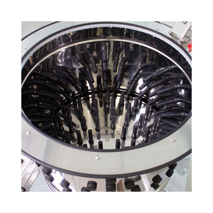 - Cylindre et plateau rotatif en acier inoxydable AISI 304, chacun avec 72 doigts