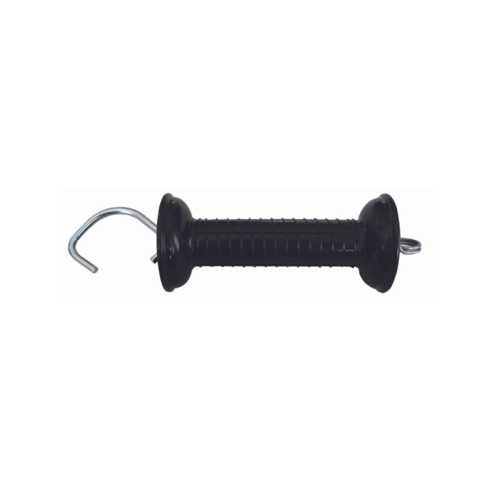 Poignée solide et économique idéale pour la mise en place d'une entrée dans la clôture. Ressort intégré qui permet de réduire la tension et la casse du fil. Crocher visée à l'avant.