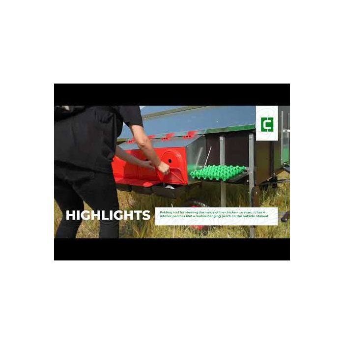 Poulailler mobile pour volailles en métal galvanisé (toit) et panneaux phénoliques (murs) résistants à l'humidité. Les panneaux bois ont une épaisseur de 18 mm. Le poulailler peut accueillir jusqu'à 30 poules.