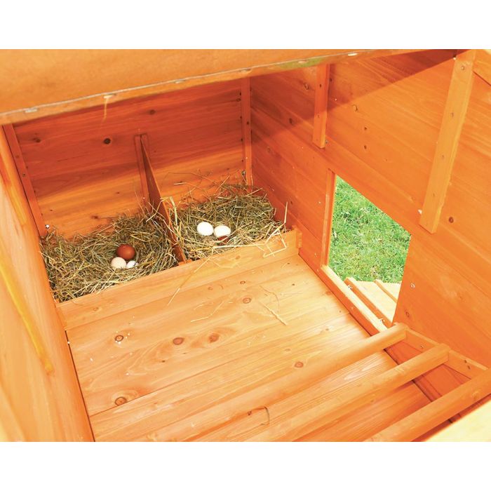 A L'intérieur, le poulailler Ottawa se compose d'une partie perchoir et de l'autre côté, d'une partie composée de 2 pondoirs. Il se compose d’une partie abri, d’une partie pondoir et d’un enclos extérieur. Chaque partie du poulailler est accessible par une trappe qui vous permettra de le nettoyer rapidement et facilement.