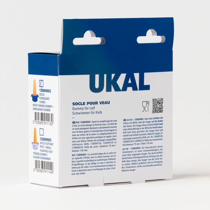 Socle flottant livré avec sa tétine (ref. 120009120) pour faciliter l'alimentation des jeunes veaux dans les seaux. Ce socle dispose d'une capacité à flotter avec la tétine tournée vers le bas. La partie en plastique ne contient pas d'élément d'équilibrage, ce qui oblige le veau à chercher la tétine par les côtés. Il est extrêmement pratique et facile à démonter pour le nettoyage du socle.